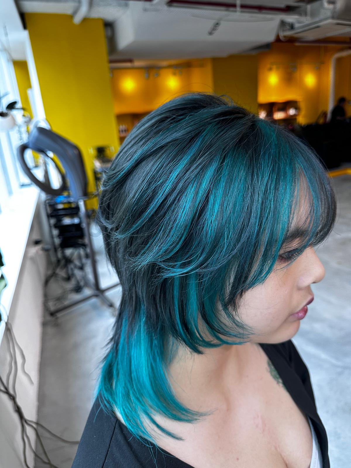 Emerald Green Inner Highlights Wolf Cut | Japanese Hair Salon Singapore
