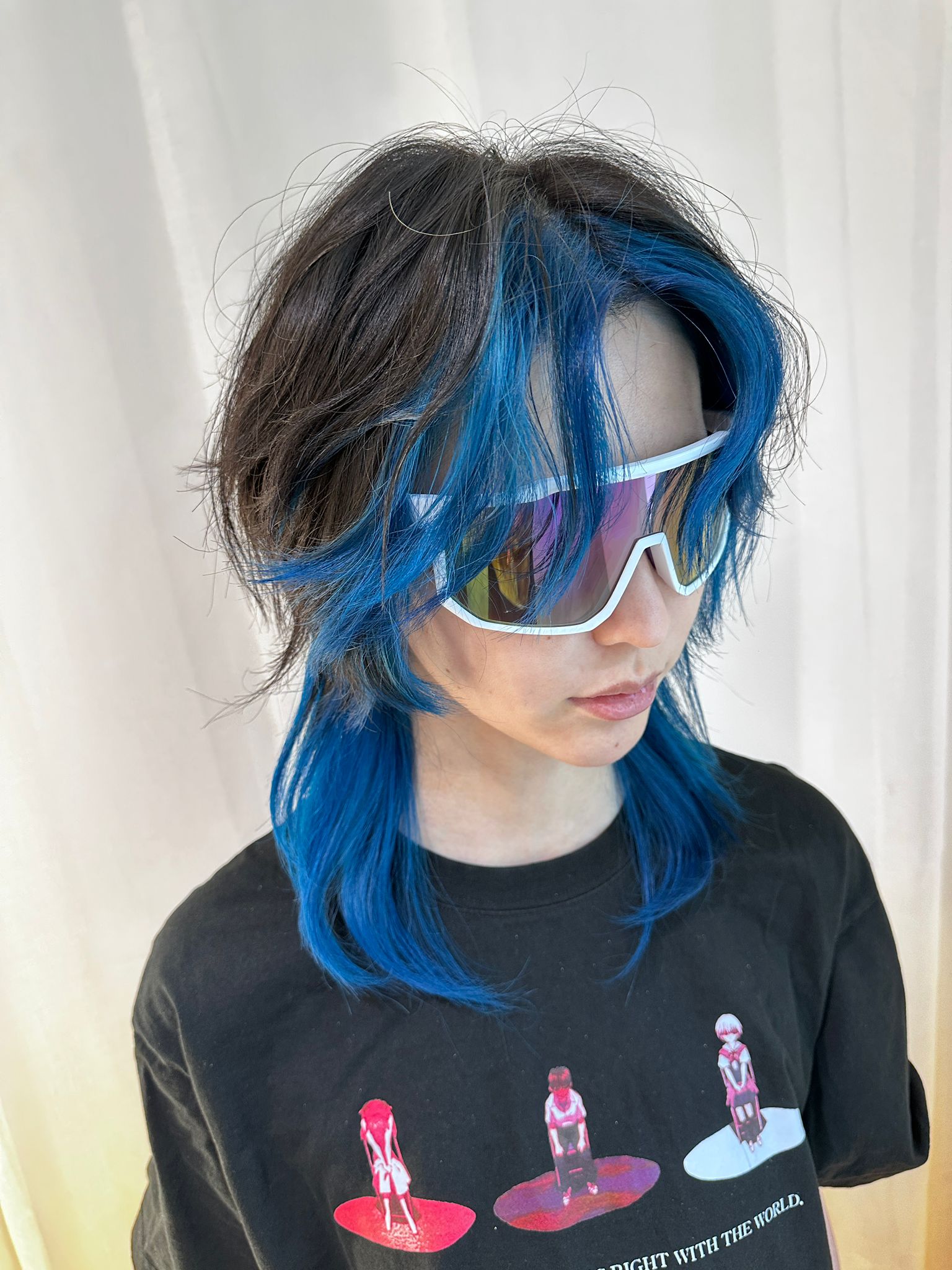 Face Framing Blue Medium Layer | Japanese Hair Salon Singapore