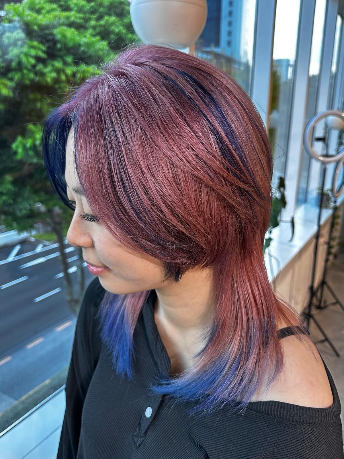 Full Bleach Design Color Pink Ash × Blue Ash | Japanese Hair Salon Singapore