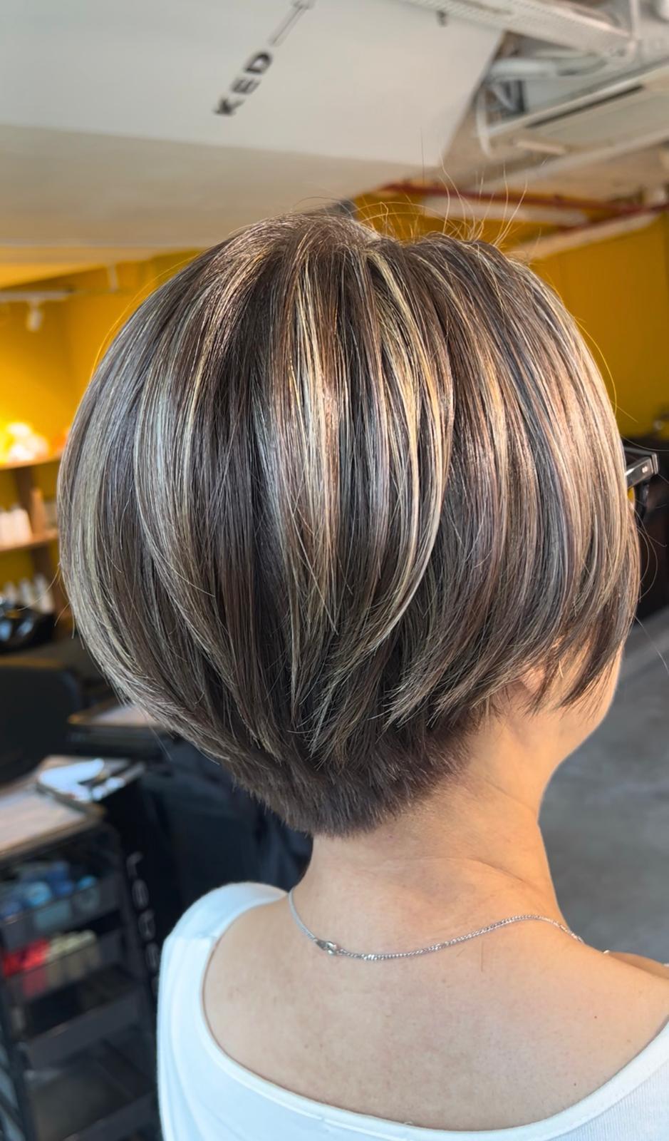 Grey Blending Highlight Short Hair Contrast | Japanese Hair Salon Singapore
