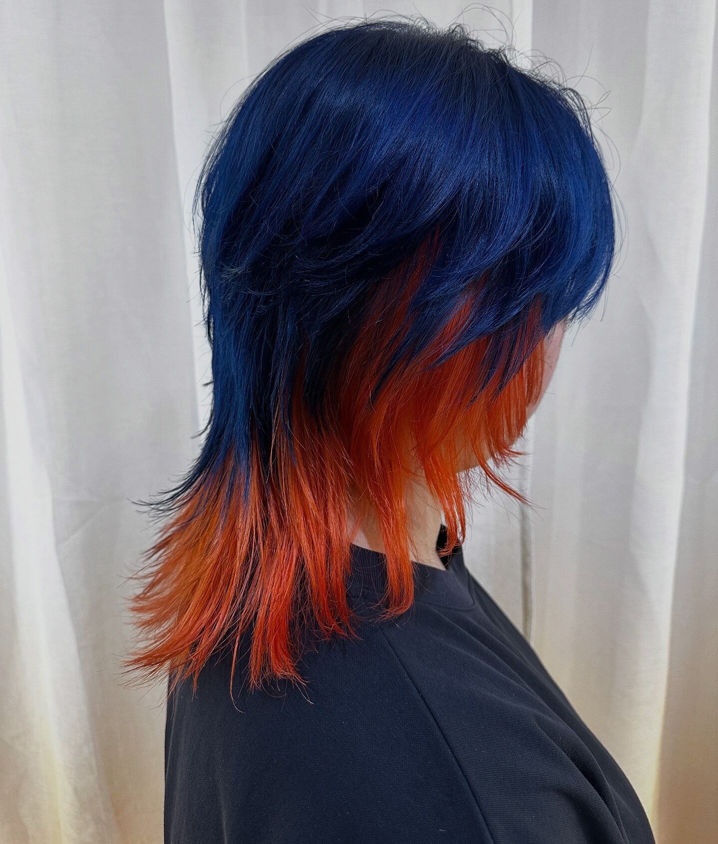 Blue & Orange Full Bleach High Layer | Japanese Hair Salon Singapore