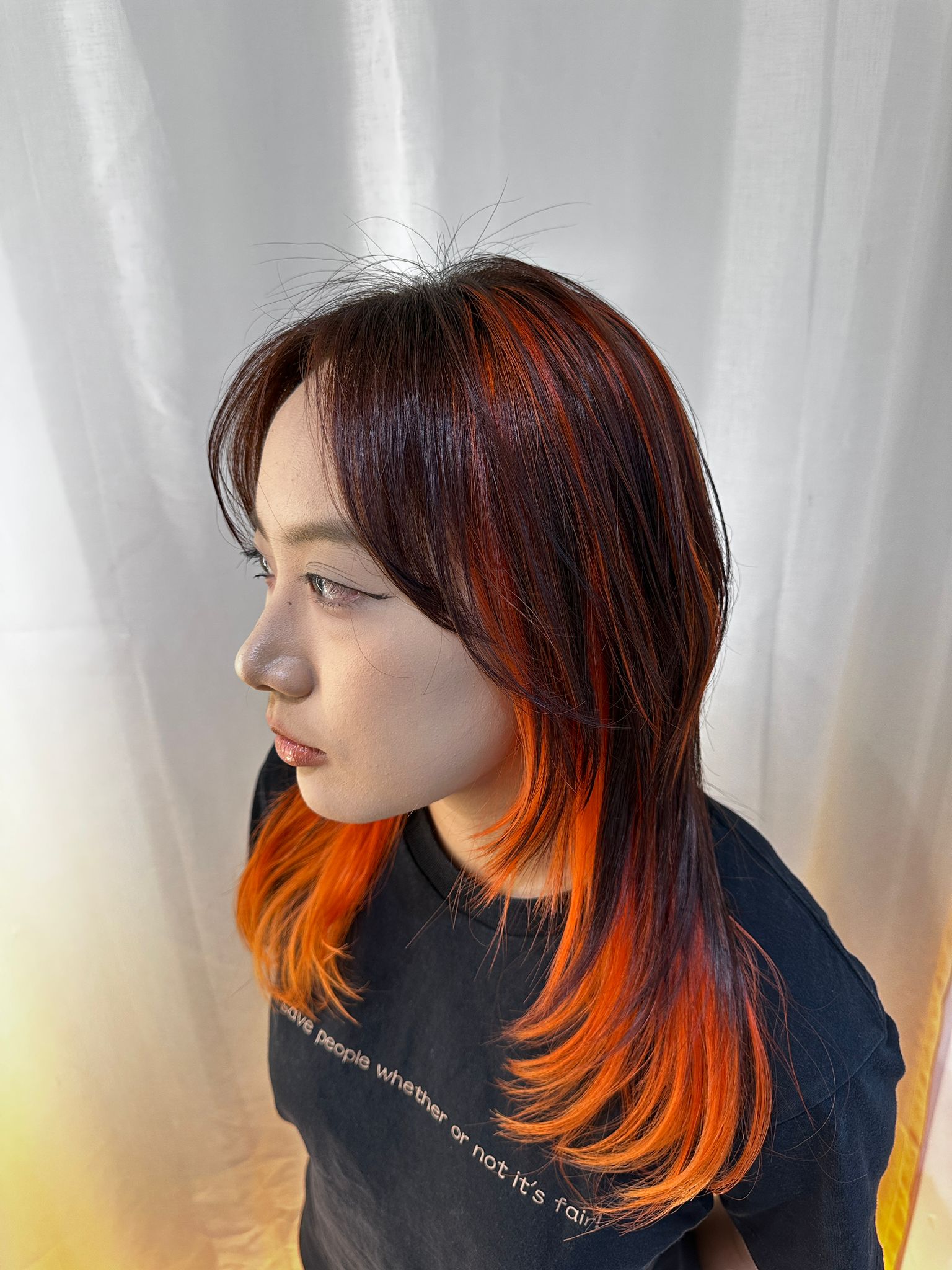 Highlight & Inner Orange Design Color | Japanese Hair Salon Singapore
