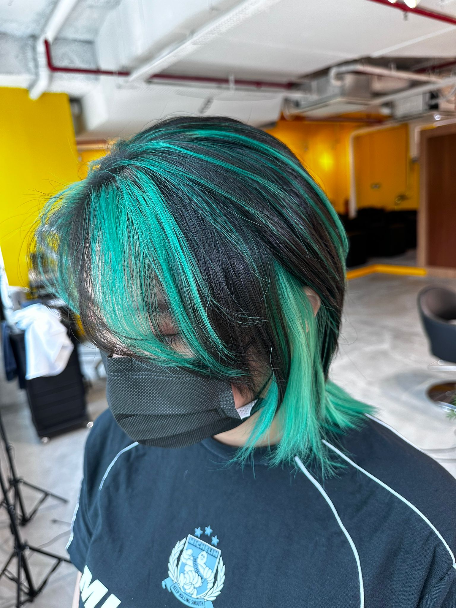 Low-Damage Green Bleach Wolf Cut at Colors Japanese Hair Salon Singapore (Near Clarke Quay)