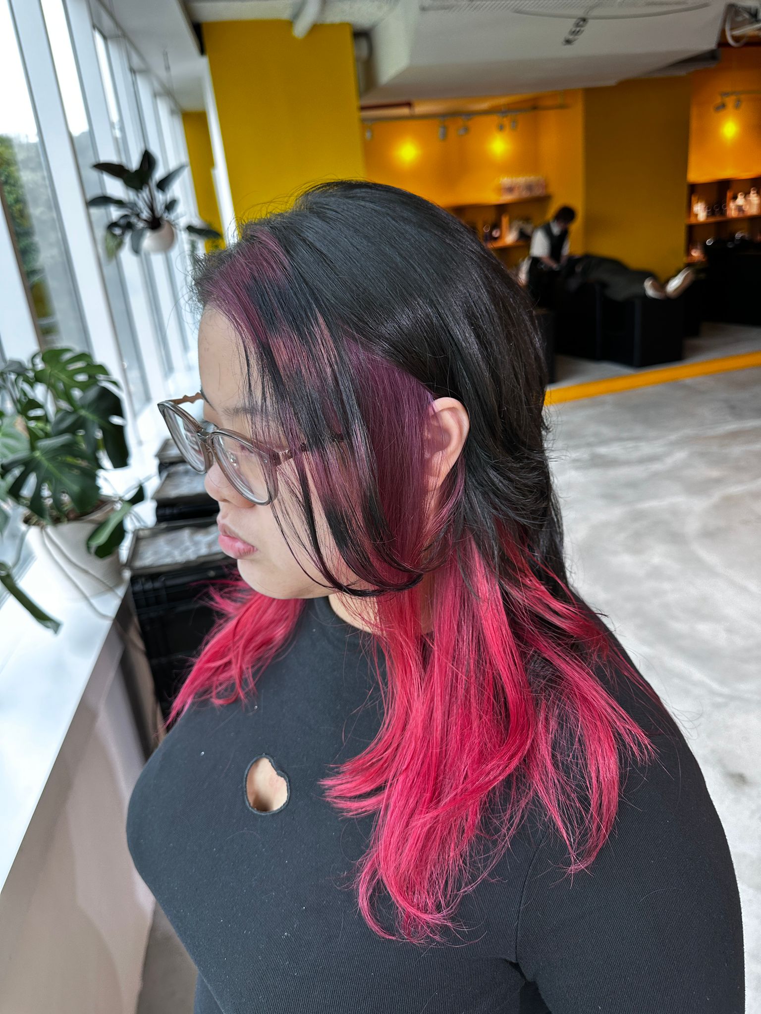 Raccoon Inner Bleach Red & Black Design | Japanese Hair Salon Singapore