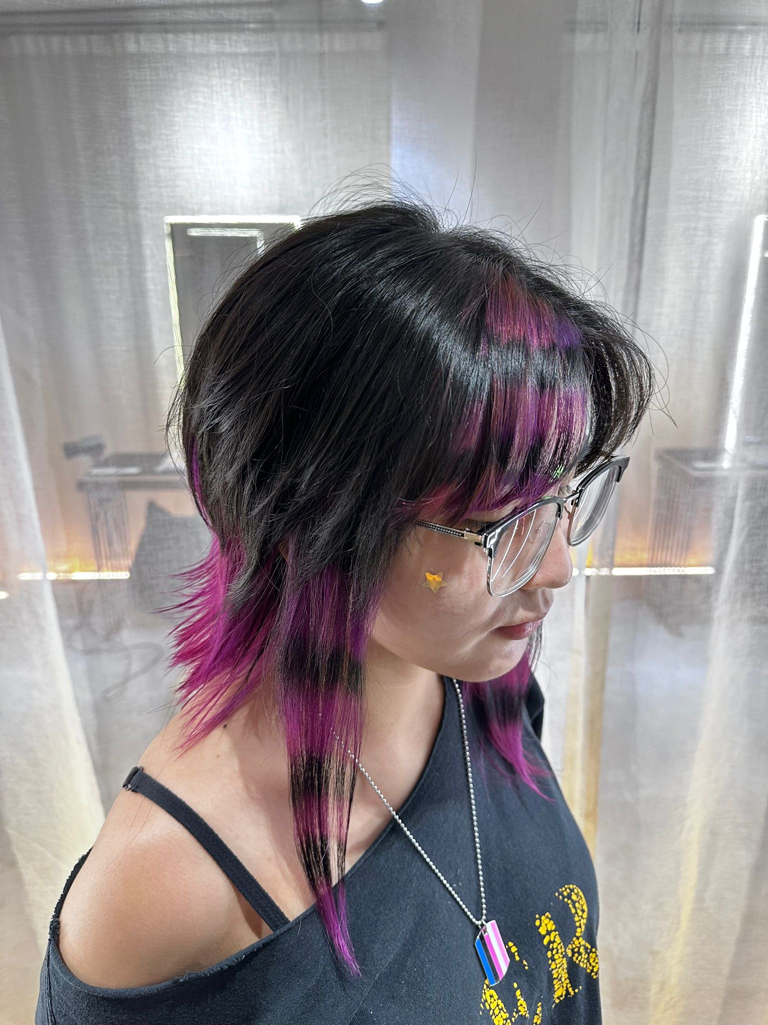 这款造型是在 Colors Japanese Hair Salon Singapore 完成的,采用可去除黑色与紫色条纹染(Stripe Color),位于 Clarke Quay、Chinatown 与 Havelock Road 附近。