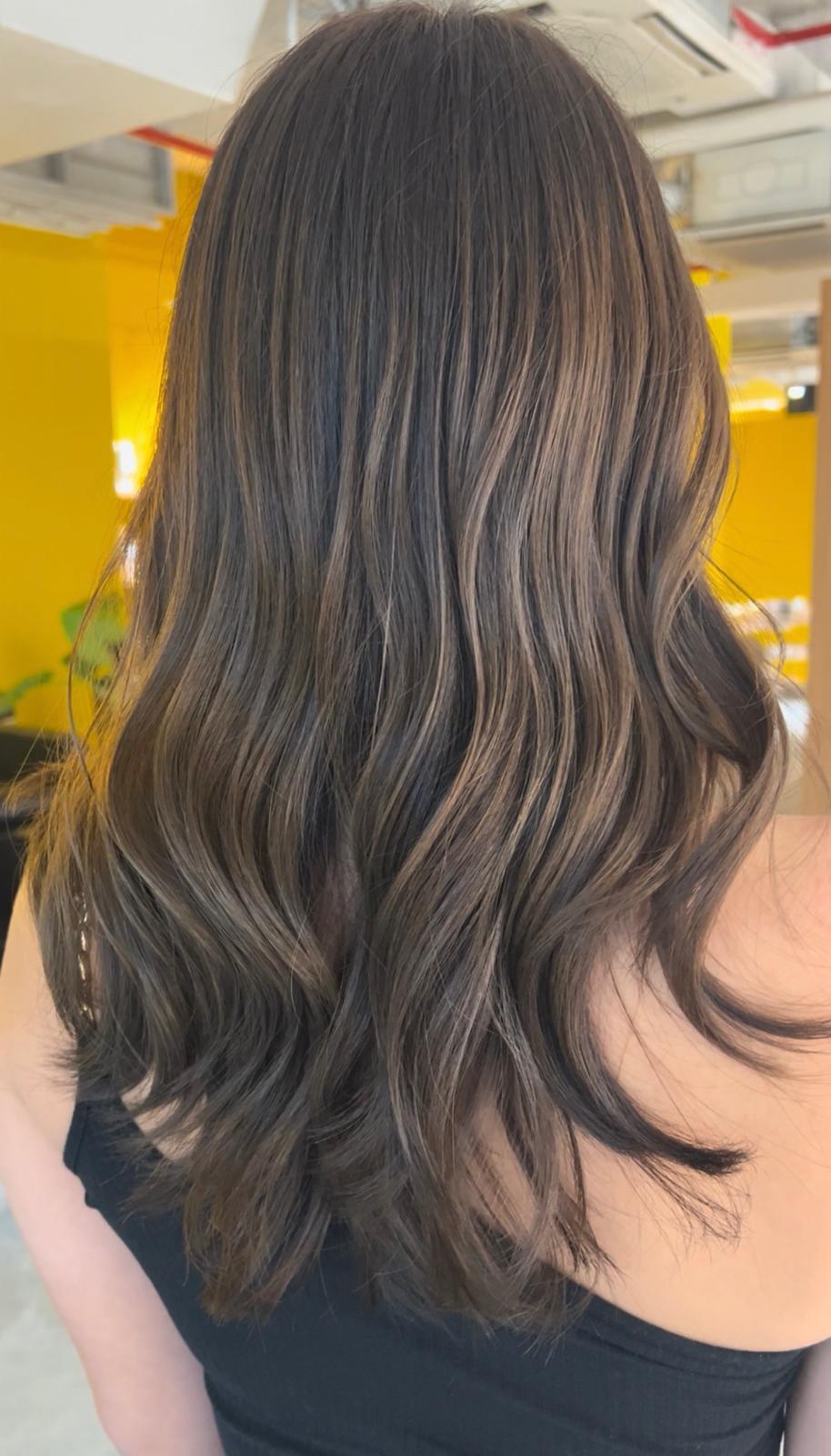 Long Layered Haircut Milk Tea Color No Bleach | Japanese Hair Salon Singapore