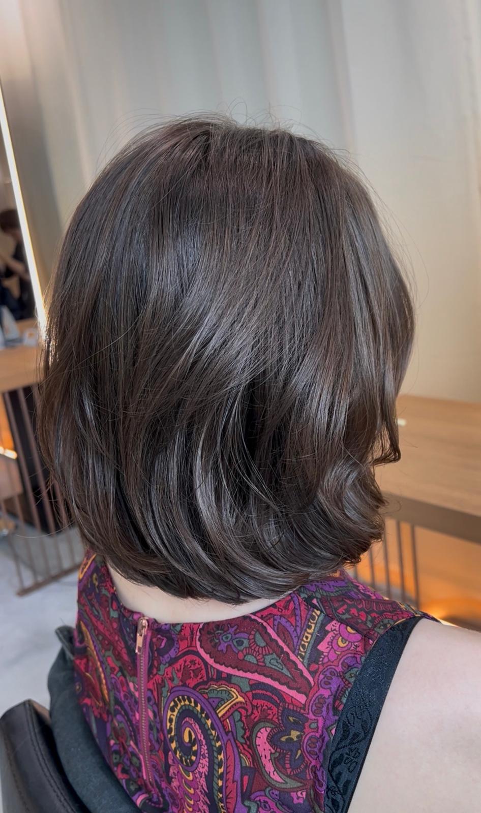 Medium Wavy Haircut Ash Brown Grey Coverage | Japanese Hair Salon Singapore