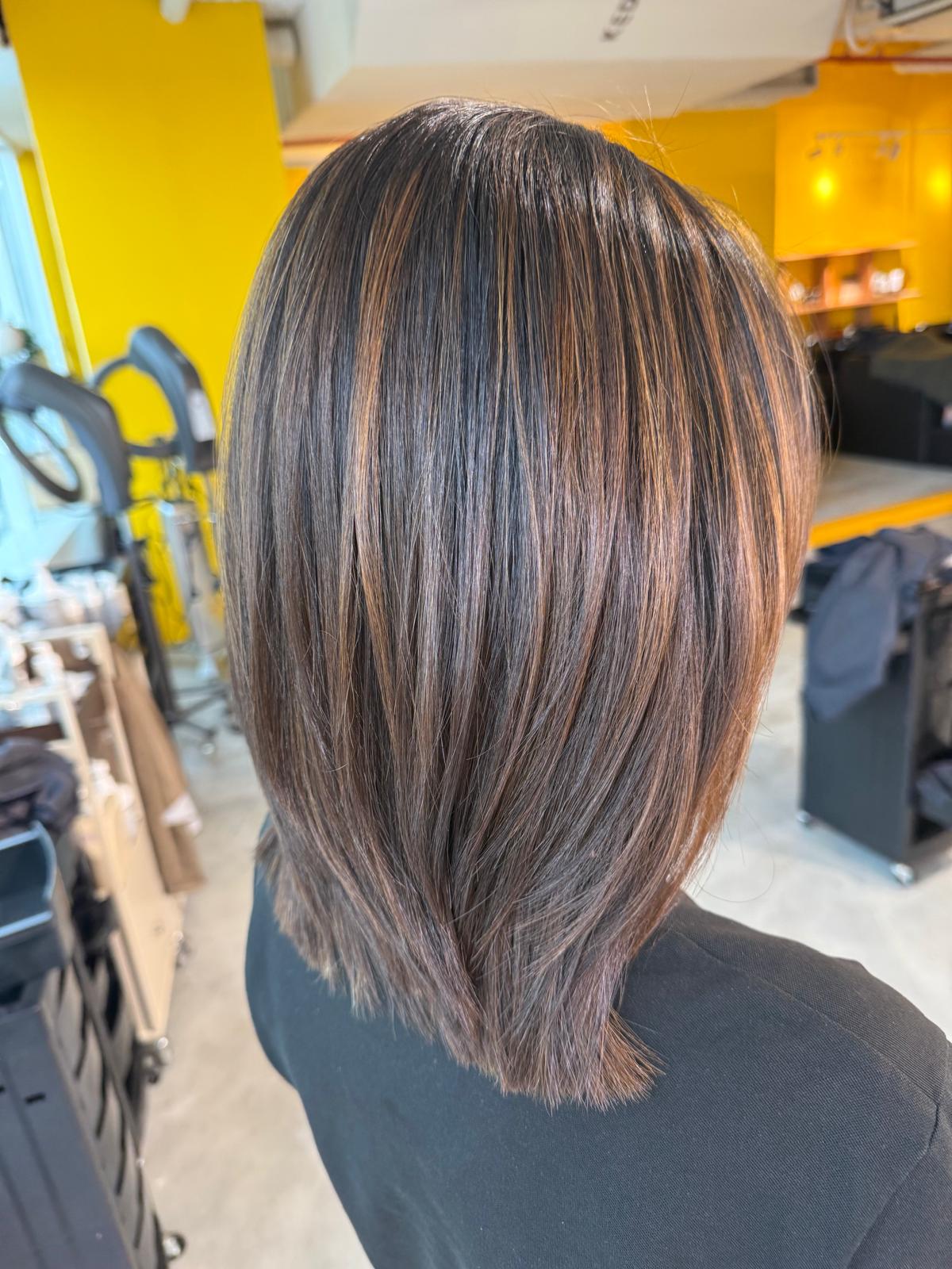 Natural Light Brown Highlights on Dark Hair | Low Layer Cut | Japanese Hair Salon Singapore