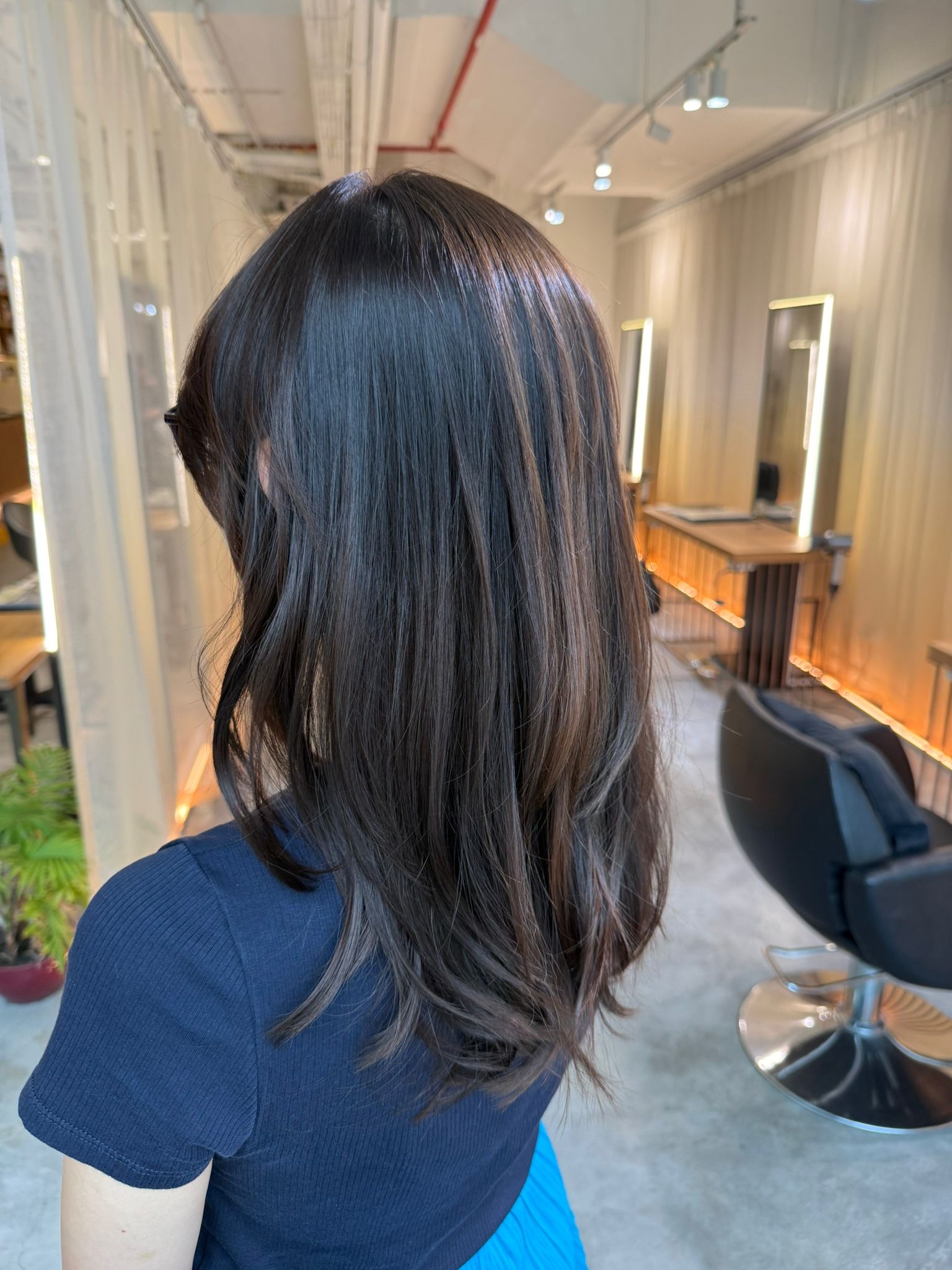 Plex Color Ash Brown with Soft Layer | Japanese Hair Salon Singapore