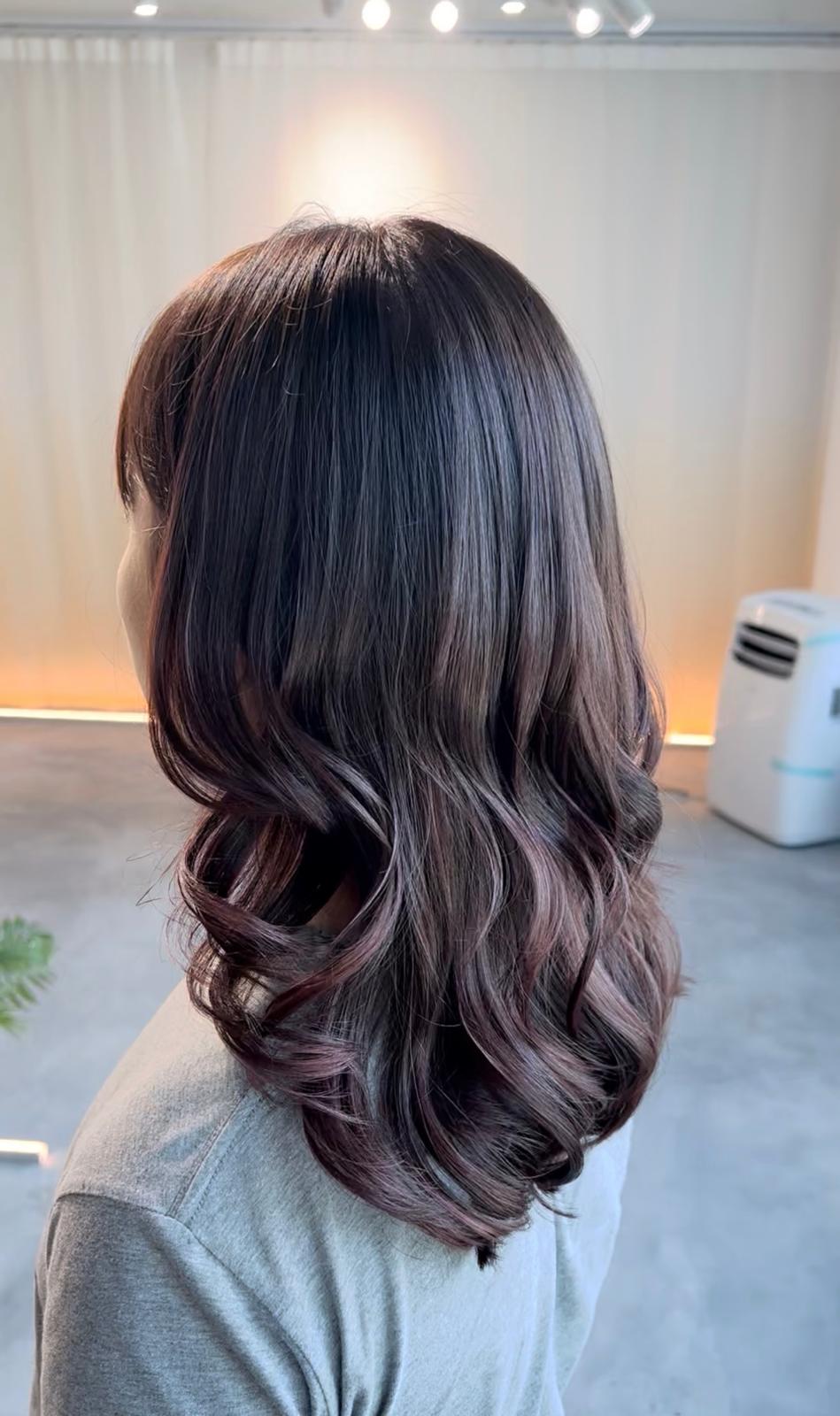 The haircut includes soft, minimal layers to maintain shape and control while allowing movement. The digital perm creates structured, long-lasting curls that are easy to manage. The warm brown hair color enhances shine and prevents yellow fading, keeping the tone elegant even after weeks.