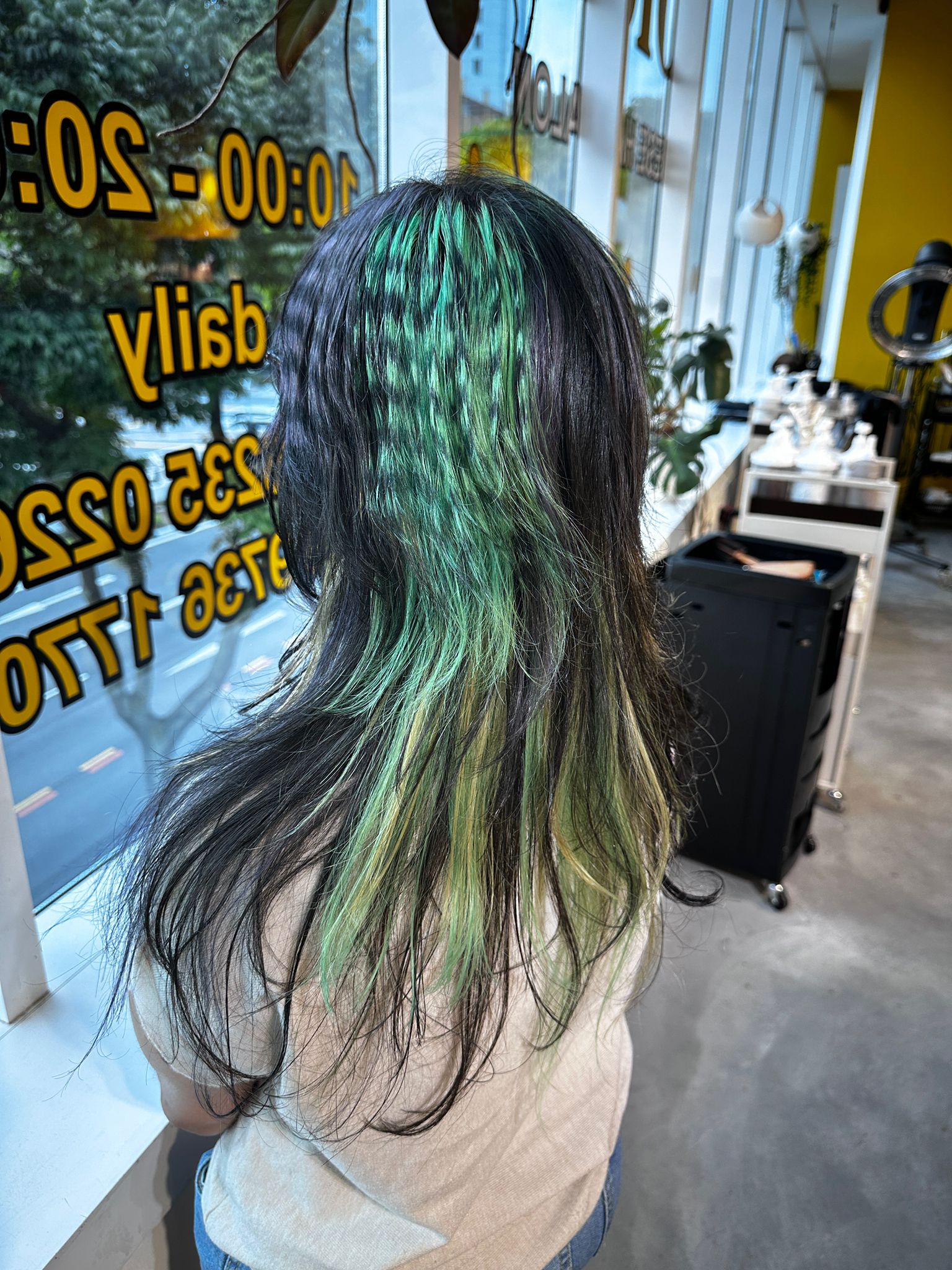 green stripe hair bleach design black removable color low damage plex Japanese hair salon Singapore Clarke Quay Chinatown Havelock Road