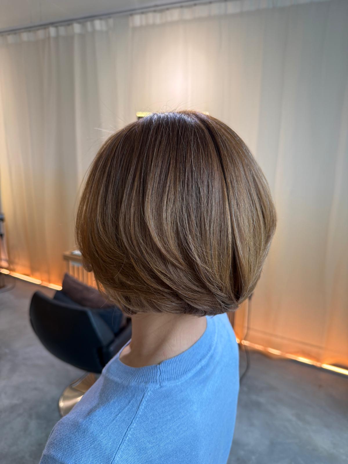 Also known as a soft layered bob or volume control bob, this style can be adjusted depending on hair texture. Maintenance is typically every 1.5–2 months to keep the shape and color fresh.