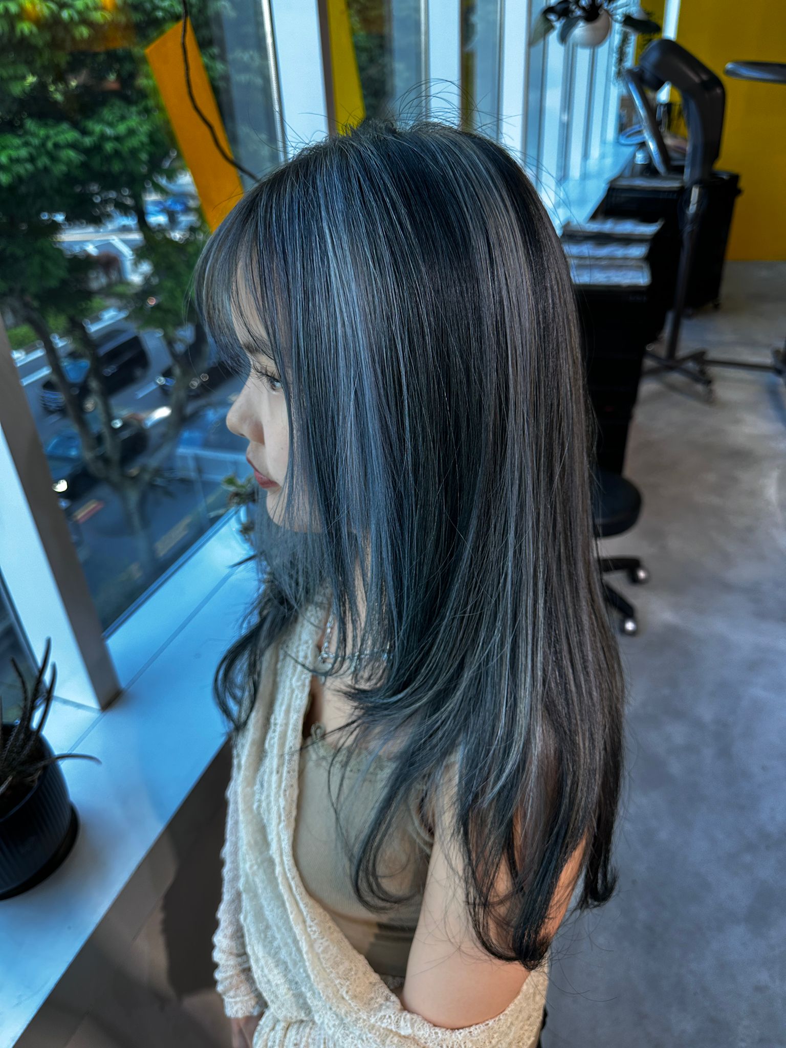 Looking for subtle highlights in Singapore that still make a statement? If you are searching for “ash brown highlights Singapore,” “light blue highlights near me,” or a Japanese hair salon that specializes in natural contrast design, this style is for you.